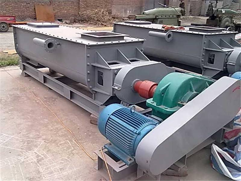 同時(shí),還可在出料口料槽端部安裝一小段反旋向葉片,以防端部堵料。對(duì)進(jìn)入粉塵加濕攪拌機(jī)的物料進(jìn)行必要的清理,以防止大雜或纖維性雜質(zhì)進(jìn)入機(jī)內(nèi)引起堵塞。