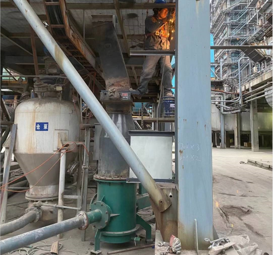 料封泵一般安裝在料倉底部,新投產(chǎn)的料封泵應(yīng)先把活動風(fēng)管外腔加入足量的潤滑油,再通過執(zhí)行機(jī)構(gòu)對活動風(fēng)管進(jìn)行調(diào)整,來改變噴嘴與噴頭之間的距離,通過調(diào)試來選擇一個比較理想的位置同時記下標(biāo)尺刻度,開始正常工作。停機(jī)時先使噴嘴與噴頭閉合并使管道內(nèi)物料全部輸送完才能停風(fēng)。料封泵只有在料面具有一定高度時才能正常工作,如果料位低于一定值時輸送量就會減少,如果突然停氣等原因使管道堵塞時,應(yīng)使噴嘴與噴頭閉合吹起直至管道暢通。